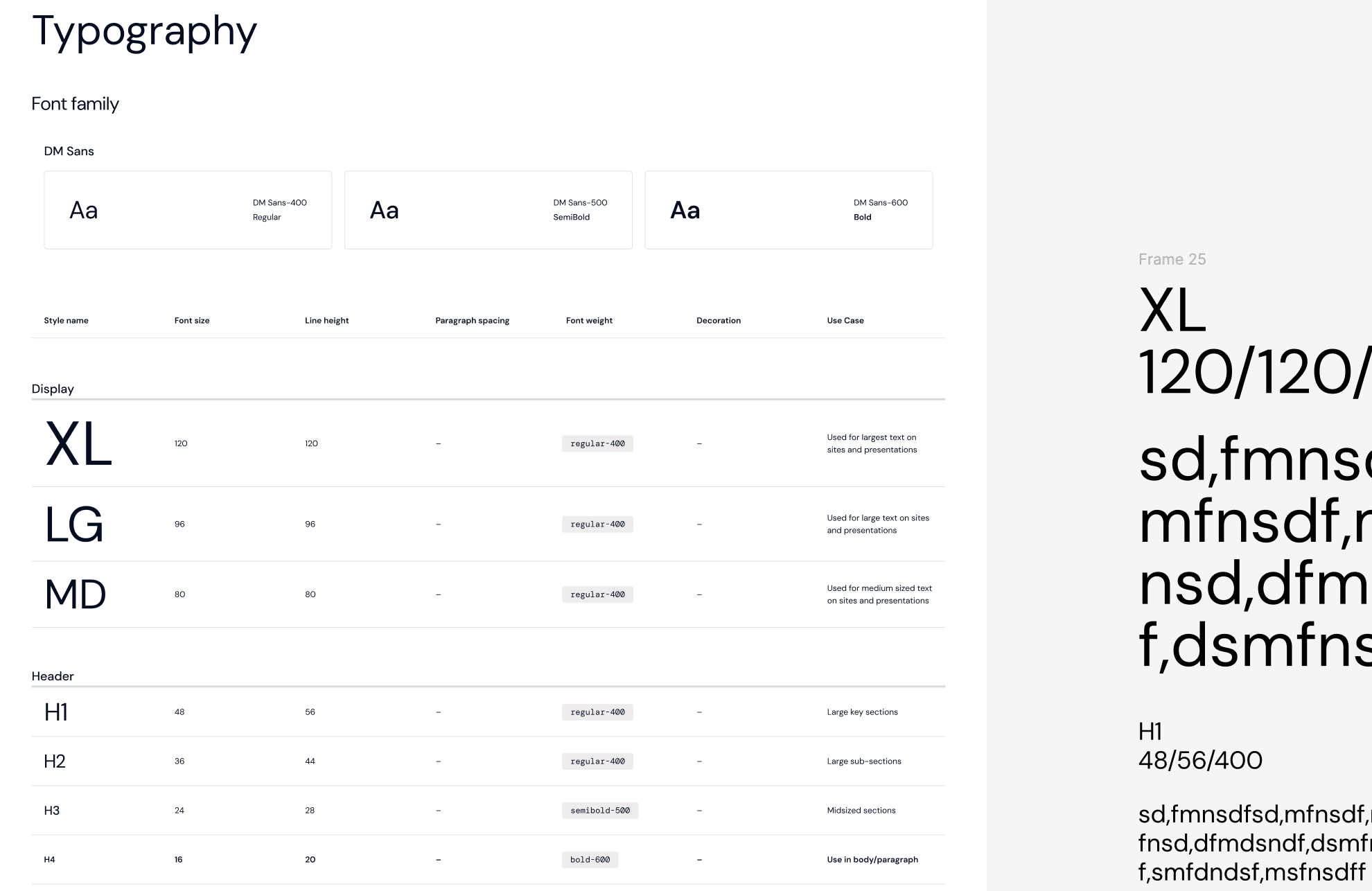Defined typography, spacing, color, and component logic